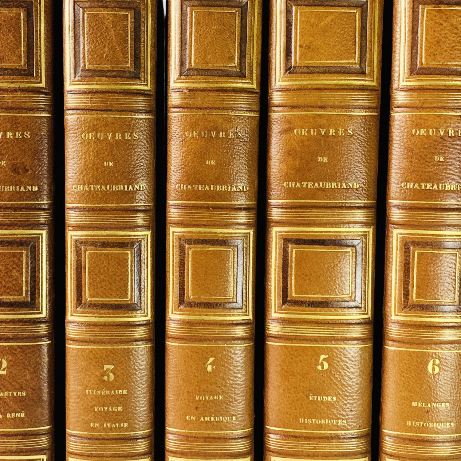 Volume 1: Génie du christianisme. Volume 2: Les martyrs, Atala, René, Les aventures du dernier Abencerage, Moïse. Volume 3: Itinéraire de Paris à Jérusalem, Voyage en Italie, à Clermont, au Mont Blanc. Volume 4: Voyage en Amérique suivi des Natchez. Volume 5: Etudes historiques. Volume 6: Mélanges historiques et politiques. All volumes with various prefaces, notes and supporting documents.