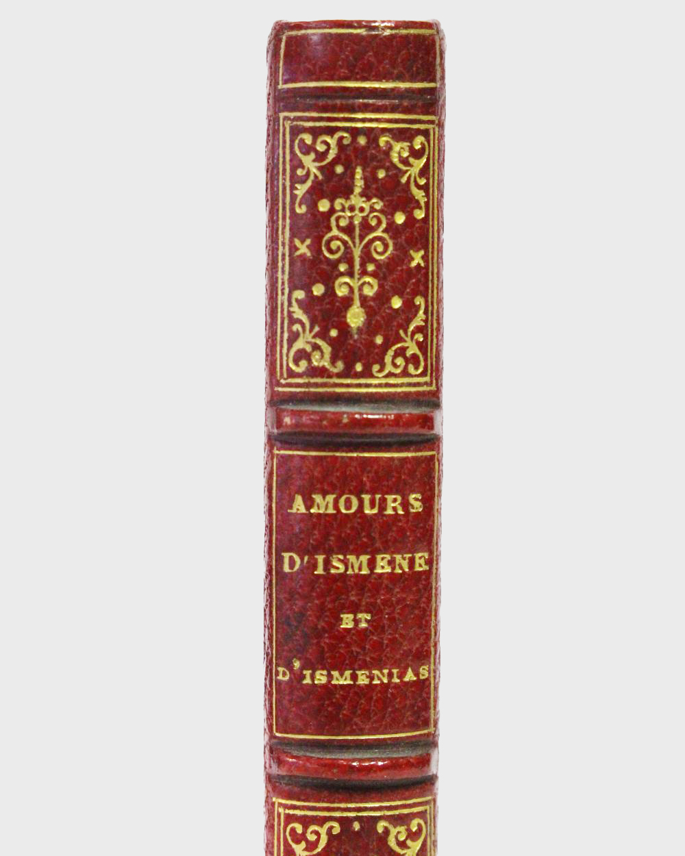 Later half morocco with corners in burgundy signed G. Dubois-D'Enghien at top of endpaper. Spine with 5 raised bands in Jansenist style with author, title, volume number and date gilt. Top edges gilt. Gilt fillets on boards.