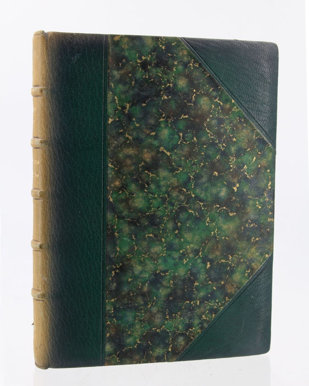 Half mint shagreen binding with corners, spine in five compartments with a scratch at foot, date at tail, covers and spine preserved, top edge gilt, binding signed by Kustner.