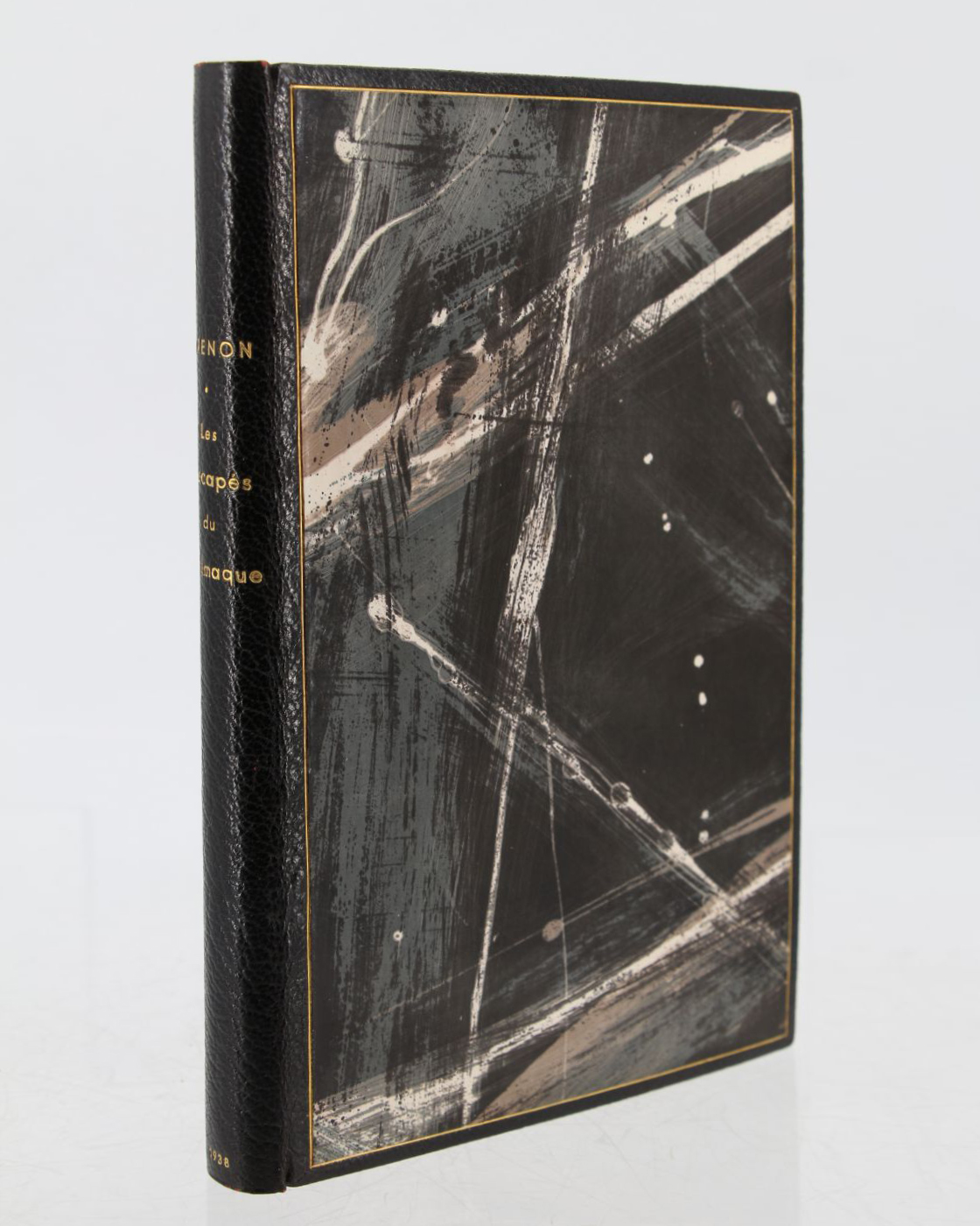 Full black morocco binding, smooth spine, gilt date at foot, boards covered with a piece of glazed paper with abstract motifs evoking a nocturnal maritime storm, gilt fillet frame on boards, beige paper endpapers and pastedowns with light foxing in margins, covers and spine preserved, all edges gilt, elegant signed binding by Micheline de Bellefroid.