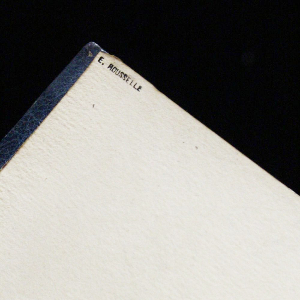 Half blue morocco binding with corners, spine very slightly faded with five raised bands, gilt date at foot, marbled paper boards, marbled endpapers and pastedowns, fragile parchment wrappers preserved, top edge gilt, contemporary binding signed by Rousselle.