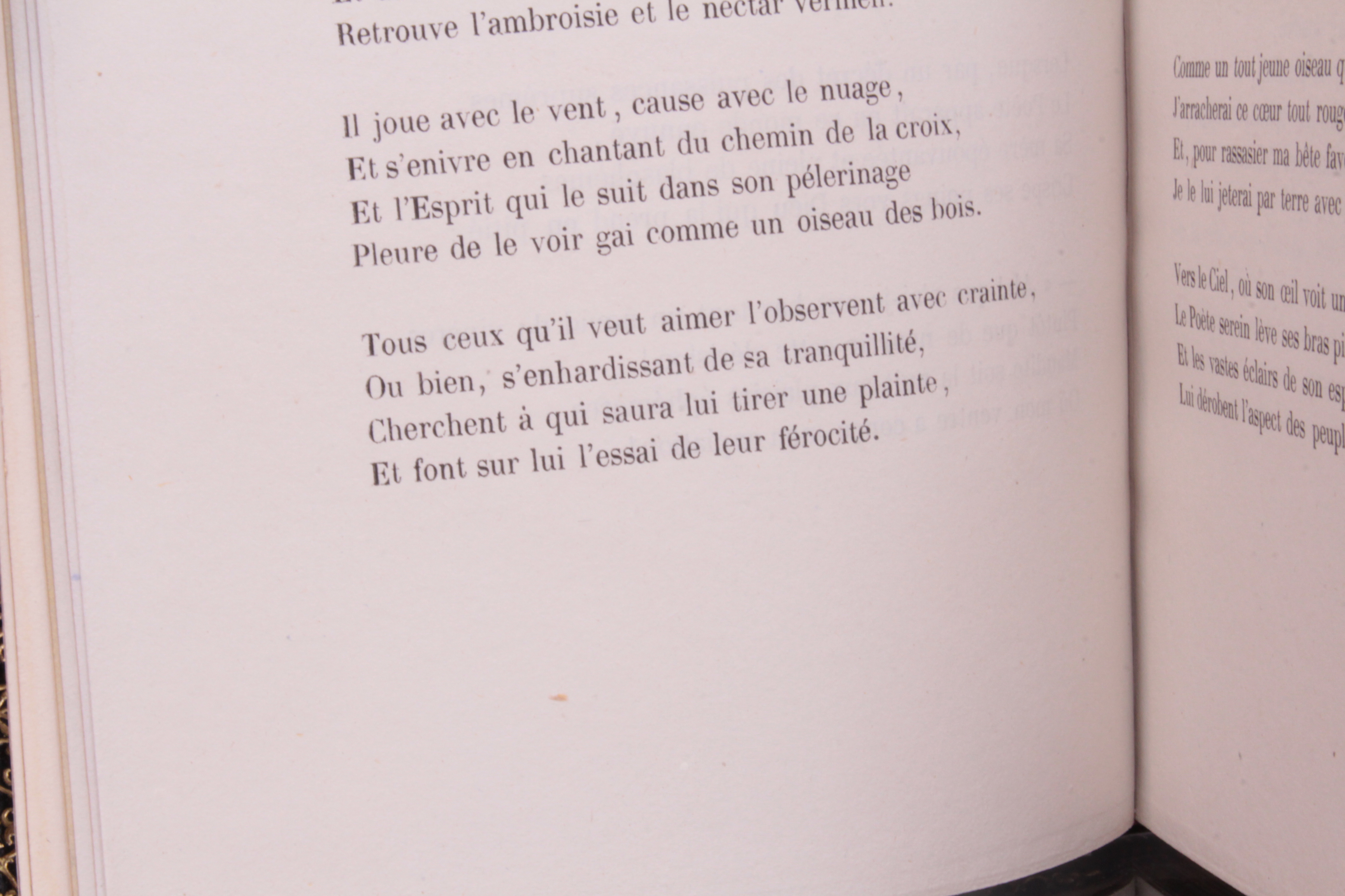 The original edition of this major work of French poetry is a bibliophile parts most universally popular and therefore more difficult to acquire. This was the case upon its release, as revealed in a note on the copy of Chicken-Malassis specifying that the price of Holland had increased sixfold in just months.
