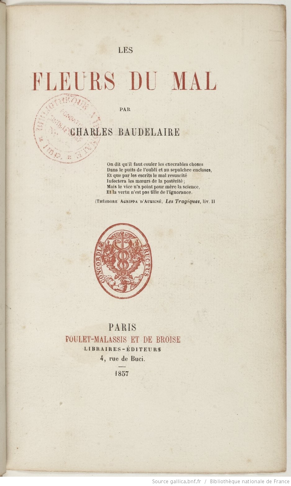 It is still complicated to understand all the nuances that characterize the stages of printing of the first edition of Les Fleurs du Mal.