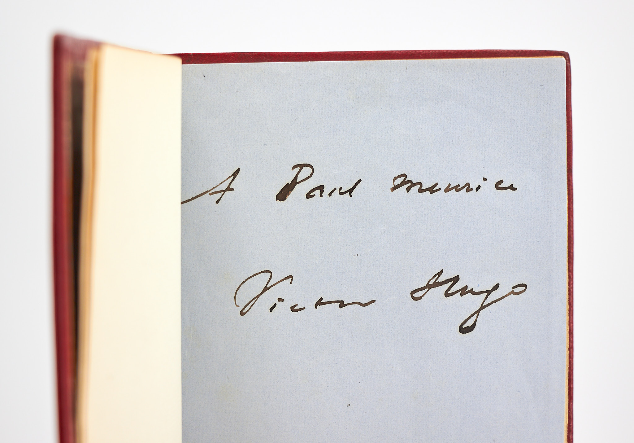 An ex-dono handwritten note by Victor Hugo addressed to Paul Meurice has been attached to this copy by us and guarded. This note, which was no doubt never used, had however been prepared by Victor Hugo with several others, to offer this friend a copy of his works published in Paris during his exile.