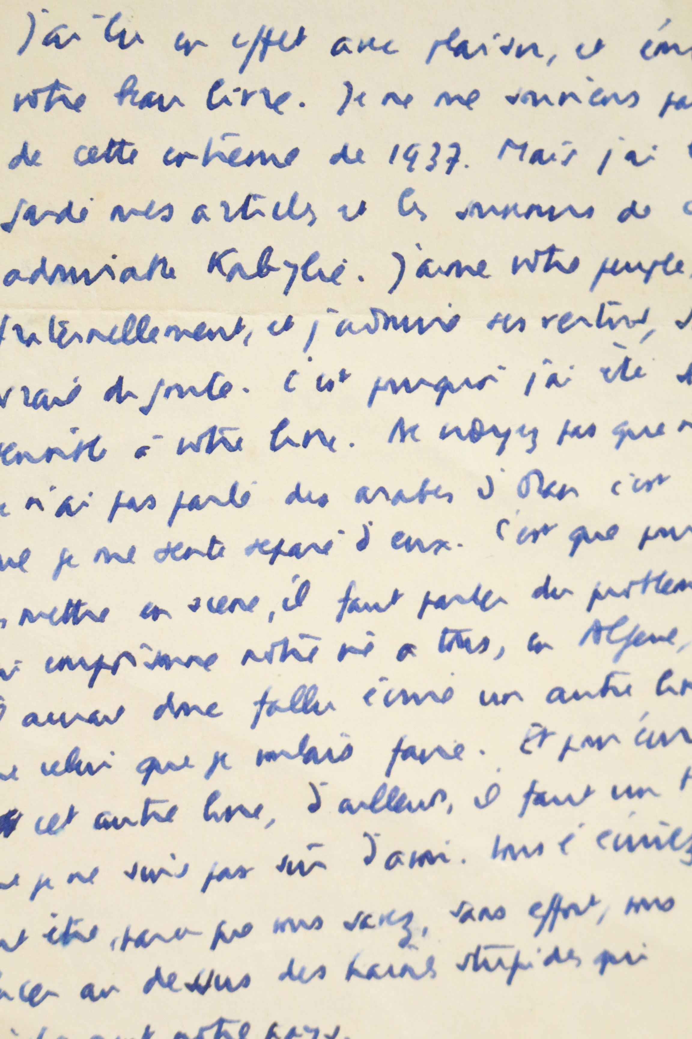 It is 1951, and Mouloud Feraoun is already a friend of Emmanuel Roblès, while Gabriel Audisio has written a glowing review of his first autobiographical novel The Poor Man’s Son. He already belongs to the intellectual community. But what Camus reveals to him in this letter is that this community cannot bridge "this gulf that is stupidly widening."