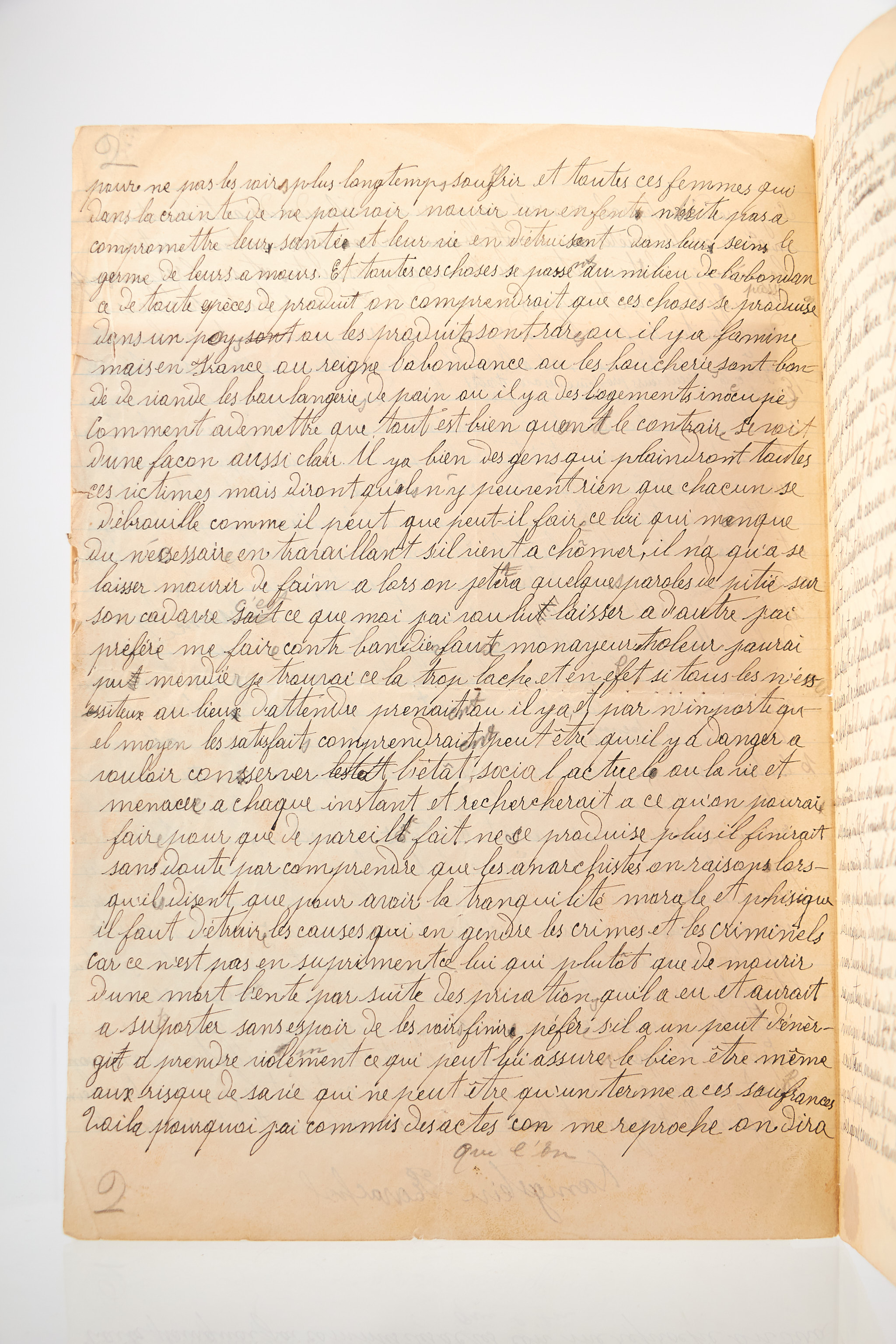 Focus sur un exceptionnel manuscrit autographe complet et signé du véritable testament de Ravachol – en grande partie inédit – inconnu sous cette forme, précédant sa réécriture par un tiers pour la publication dans la presse. Unique témoignage de la véritable pensée de l'icône de l'anarchie.