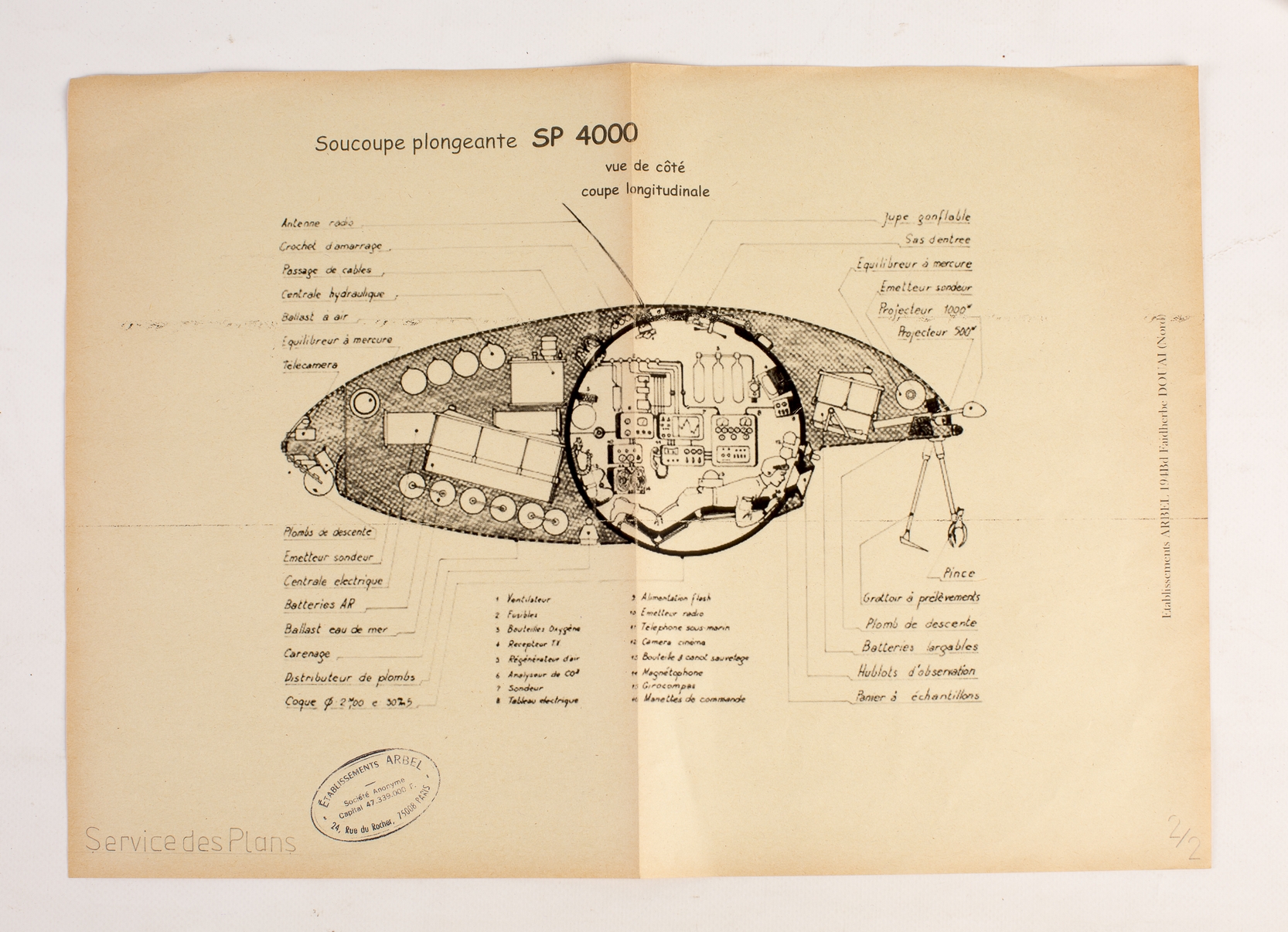 La reproduction de coupure de presse encollée au début de notre ensemble explique : « L'Office Français de Recherches Sous-Marines à Marseille va construire, pour le compte d'une firme américaine, une soucoupe plongeante, la « S. P. 4000 » qui pourra descendre à une profondeur de 4.000 mètres. Cet engin, dont la maquette grandeur nature vient d'être réalisée, doit être terminé en mai 1964. Il pourra effectuer ses premiers essais le mois suivant, avant de partir pour les États-Unis où il prendra le nom de « Deep Star » ».