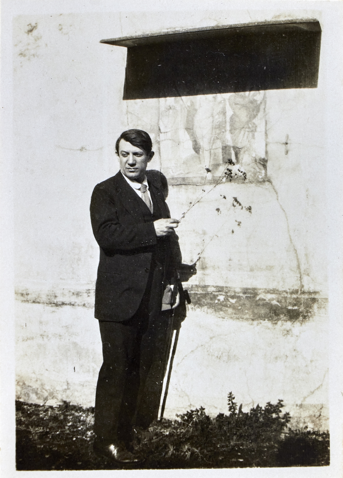 Unique and early original photograph of Picasso, taken and printed by his friend Jean Cocteau, in a mythical place that will influence his aesthetic for the long-term.