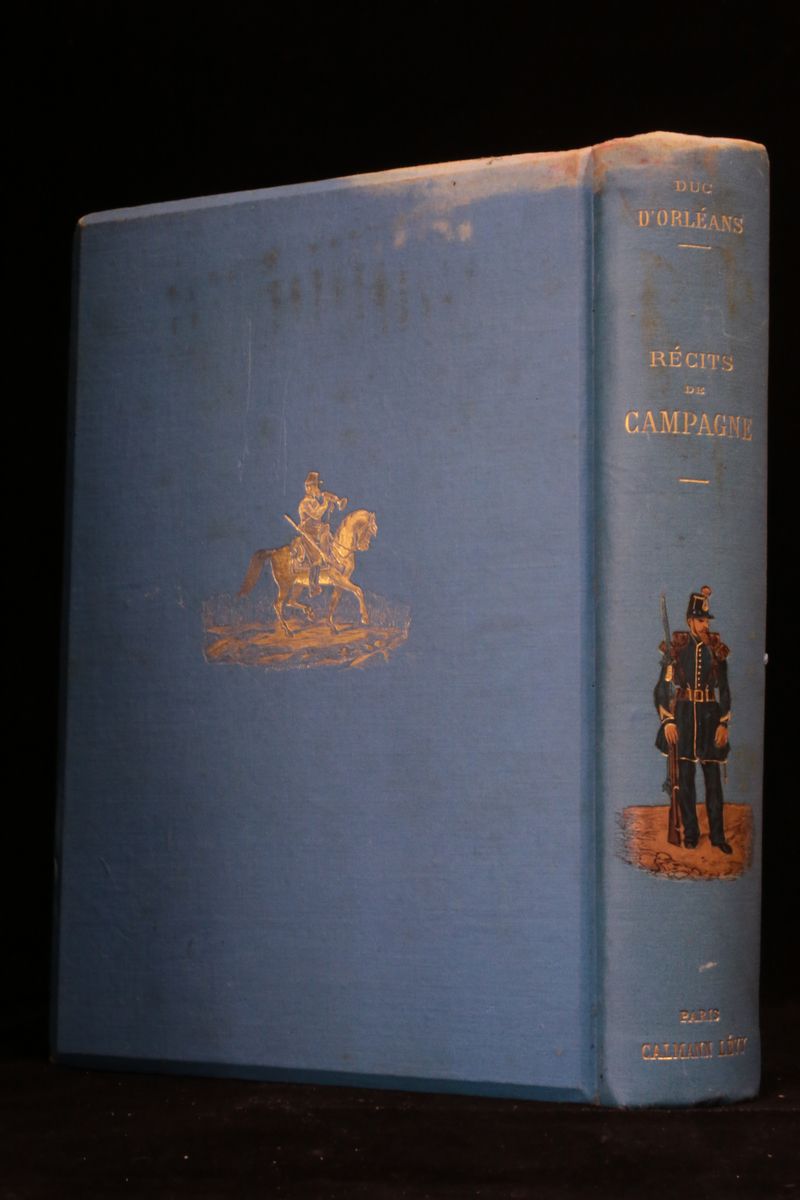 Edition illustrated with 2 large folding maps and 250 engravings after Dauzats, Horace Vernet, Ary Scheffer, Eugène Lami, Descamps, Paul Delaroche, Raffet, etc... Publisher's full blue cloth binding, smooth spine illustrated with a standing infantryman, spine and boards faded at head, front board decorated with military design, rear board illustrated with a cavalryman sounding the charge on bugle, all edges gilt, binding by Paul Souze & Engel. Some foxing affecting mainly the beginning and end of the volume.