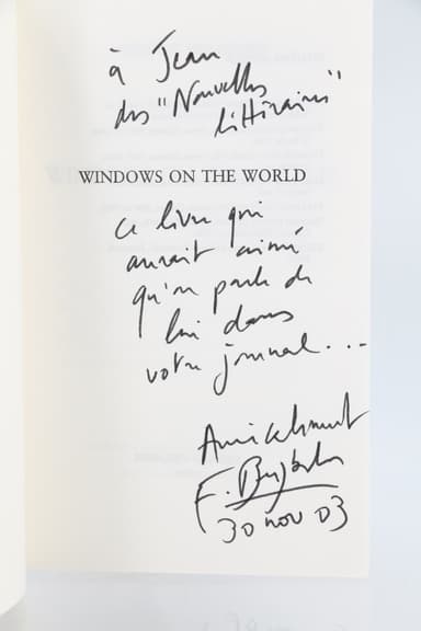 Edition originale sur laquelle il n'a pas été tiré de grands papiers. Agréable exemplaire complet de sa bande annonce "Prix interallié". Amusant envoi autographe signé de Frédéric Beigbeder à un certain Jean des Nouvelles littéraires.: "... ce livre qui aurait aimé que l'on parle de lui dans votre journal..."