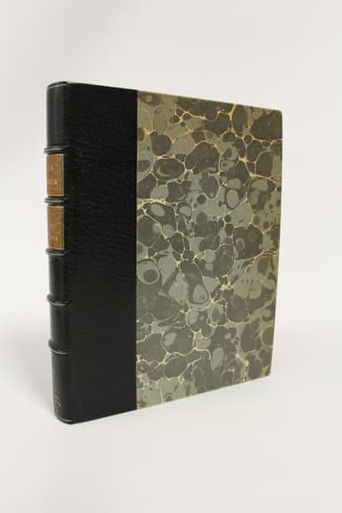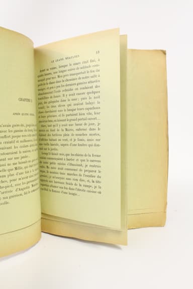 Edition originale, un des très rares exemplaires imprimés sur papier vert pour l'auteur dont il n'a été tiré que 6 ou 10 exemplaires (d'après la correspondance d'Emile-Paul), tirage en grand papier le plus restreint avant les 10 japon et les 20 hollande. Notre exemplaire possède une couverture verte comme tous les autres grands papiers, avec au centre du dos la mention imprimée « Exemplaire sur Hollande », d'autres exemplaires sur papier vert portant, selon les bibliographes, un simple fleuron central. Notons cependant que l'inventaire exhaustif des différentes couvertures vertes reste à établir et que les bibliographes n'ont notamment pas encore relevé cette particularité ni l'existence de deux type d'inscriptions : « Exemplaire sur / Hollande » en deux lignes (comme sur cet exemplaire) et « Exemplaire sur Hollande » sur une ligne (comme sur l'exemplaire de Madame Simone). L'insigne rareté des exemplaires d'auteur sur papier vert ne permet malheureusement pas de statuer en ce domaine et le seul exemplaire passé en vente ces dernières années (chez Christie's en avril 2014) ne comportait pas le dos de la couverture. Dos légèrement éclairci comme souvent et témoins passés. Notre exemplaire est présenté sous chemise en demi maroquin bleu marine, dos à cinq nerfs sertis de filets vert, date et mention « Exemplaire sur papier vert » dorées en queue, plats de papier marbré, étui bordé de maroquin bleu marine, plats de papier marbré, intérieur de feutrine grise, élégant ensemble signé de Lavaux. Précieux et rarissime exemplaire à toutes marges du tirage le plus court en grand papier.