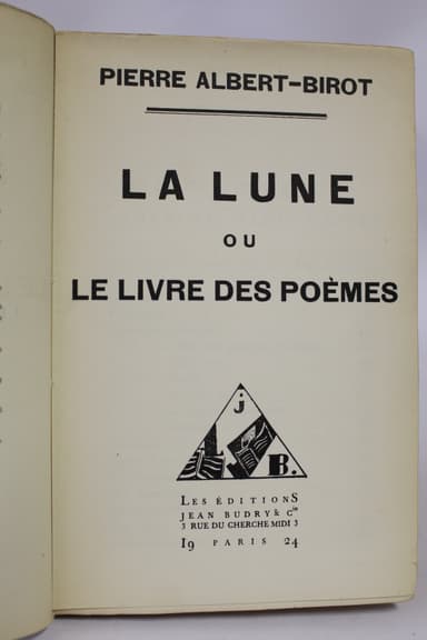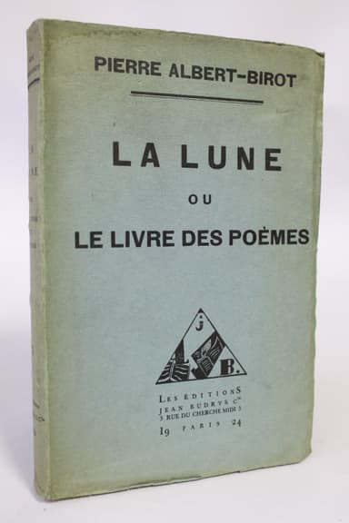 Edition originale, un des 300 exemplaires numérotés sur vergé, seul tirage après 26 Chine. Dos éclairci comme habituellement et comportant deux pâles mouillures en tête et en pied se prolongeant en marges des plats, gardes partiellement et légèrement ombrées, agréable état intérieur. Rare ouvrage d'une avant-gardiste et audacieuse typographie.