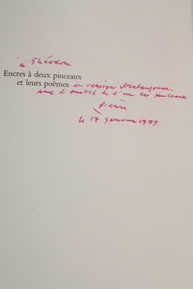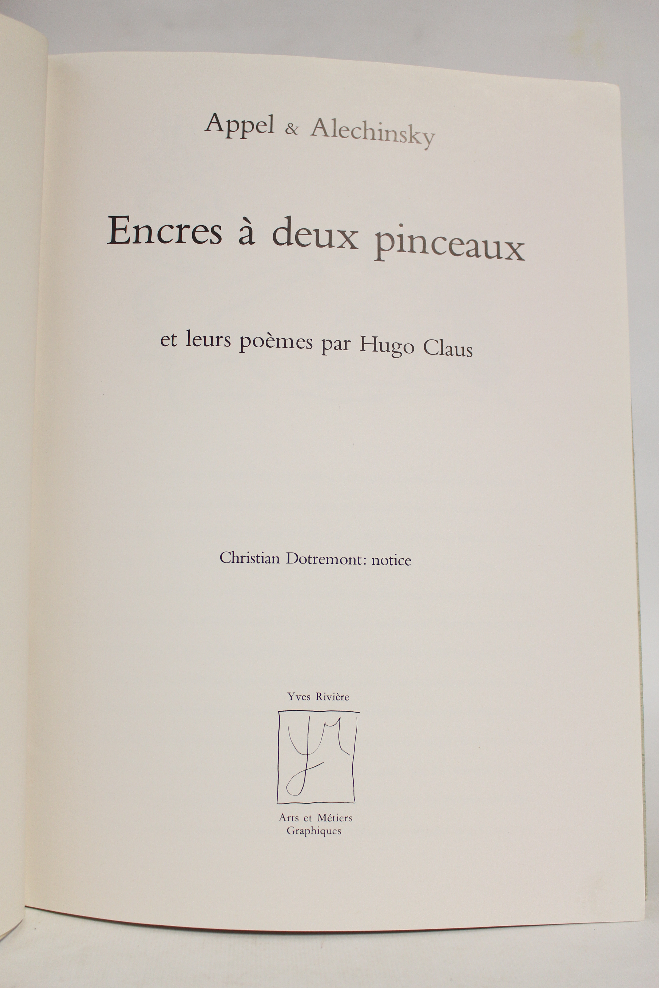 First edition of the French translation, and of wich no leading copies exists. Autograph signed and dated by Pierre Alechinsky to a friend: "... in Brabant version with the friendship of one of the brushes ..." Iconography, manual Christian Dotremont.