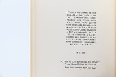 Precious copy inscribed and dated April 1966 by Beckett to his friend the painter Geer (Van Velde) and his wife Lise.