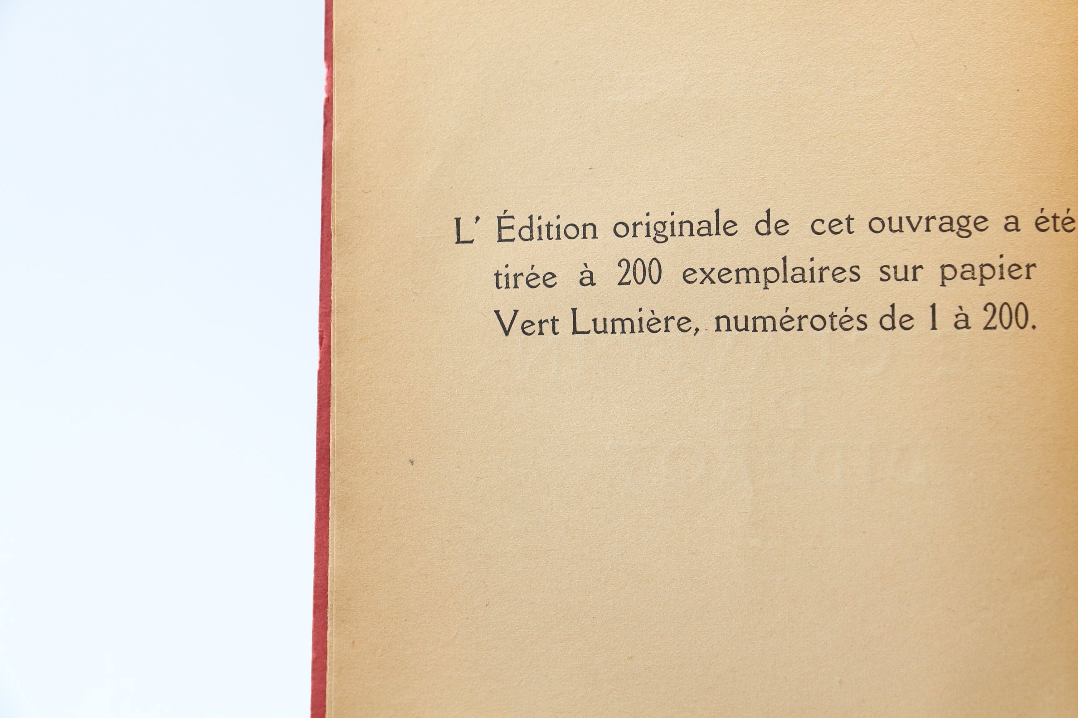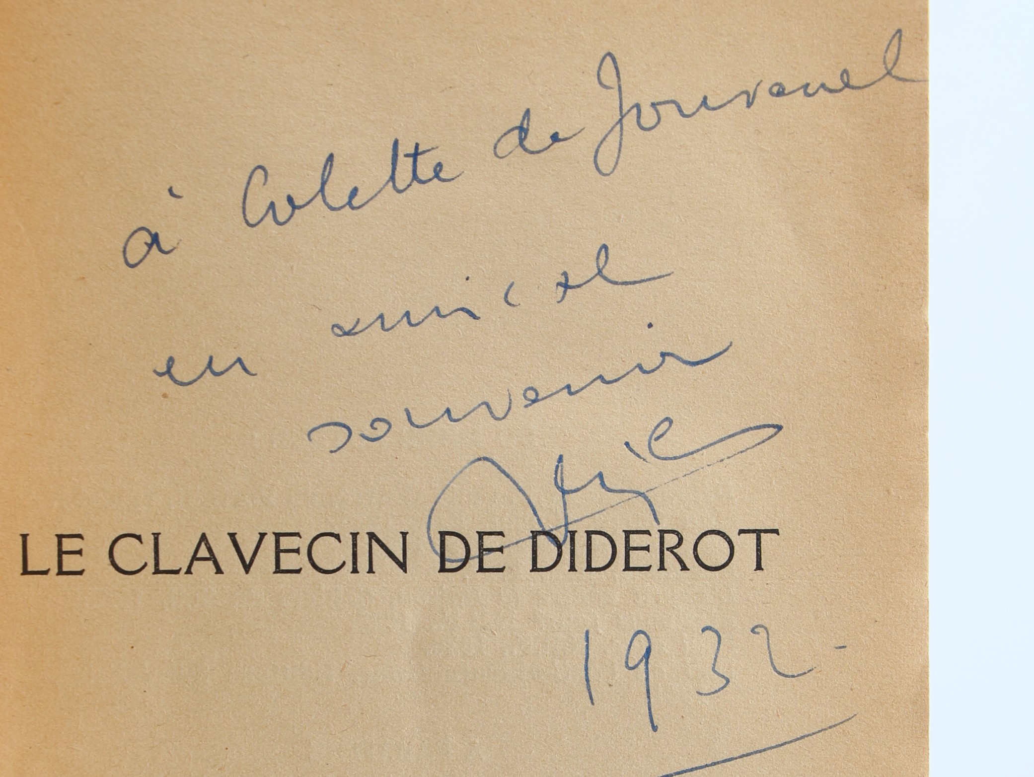 First edition on ordinary paper. Handsome autograph inscription from the author to Colette. Spine faded as usual, two small glued tears to head and to foot of a joint, a leave badly cut by the dedicatee with small marginal lacks.