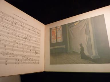 Edition originale de cette épopée en 15 tableaux mise en musique également par l'auteur. Reliure à la bradel de l'éditeur, format à l'italienne, dos lisse muet, plats vert amande illustrés. Ouvrage illustré de 15 tableaux dessinés par Henri Callot. Bel exemplaire.