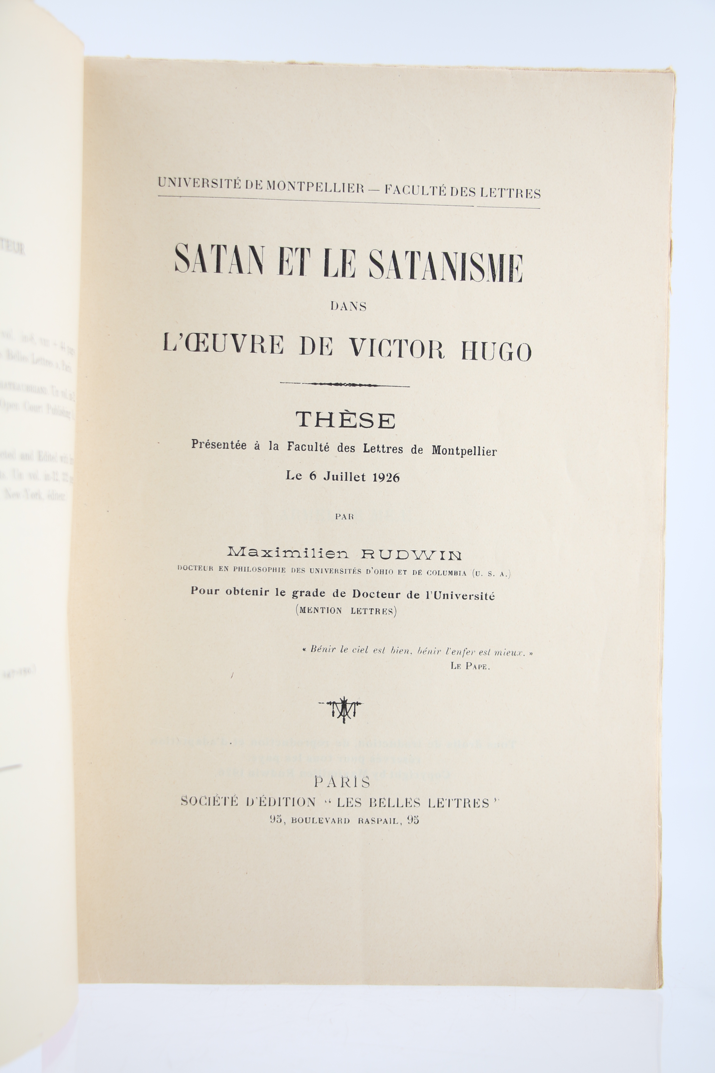 Edition originale de cette thèse présentée à la faculte des lettres de Montpellier le 6 Juillet 1926 et pour laquelle il n'a pas été tiré de grands papiers. Petites déchirures et manques marginaux sur les plats, quatre taches sur le second plat, agréable état intérieur.