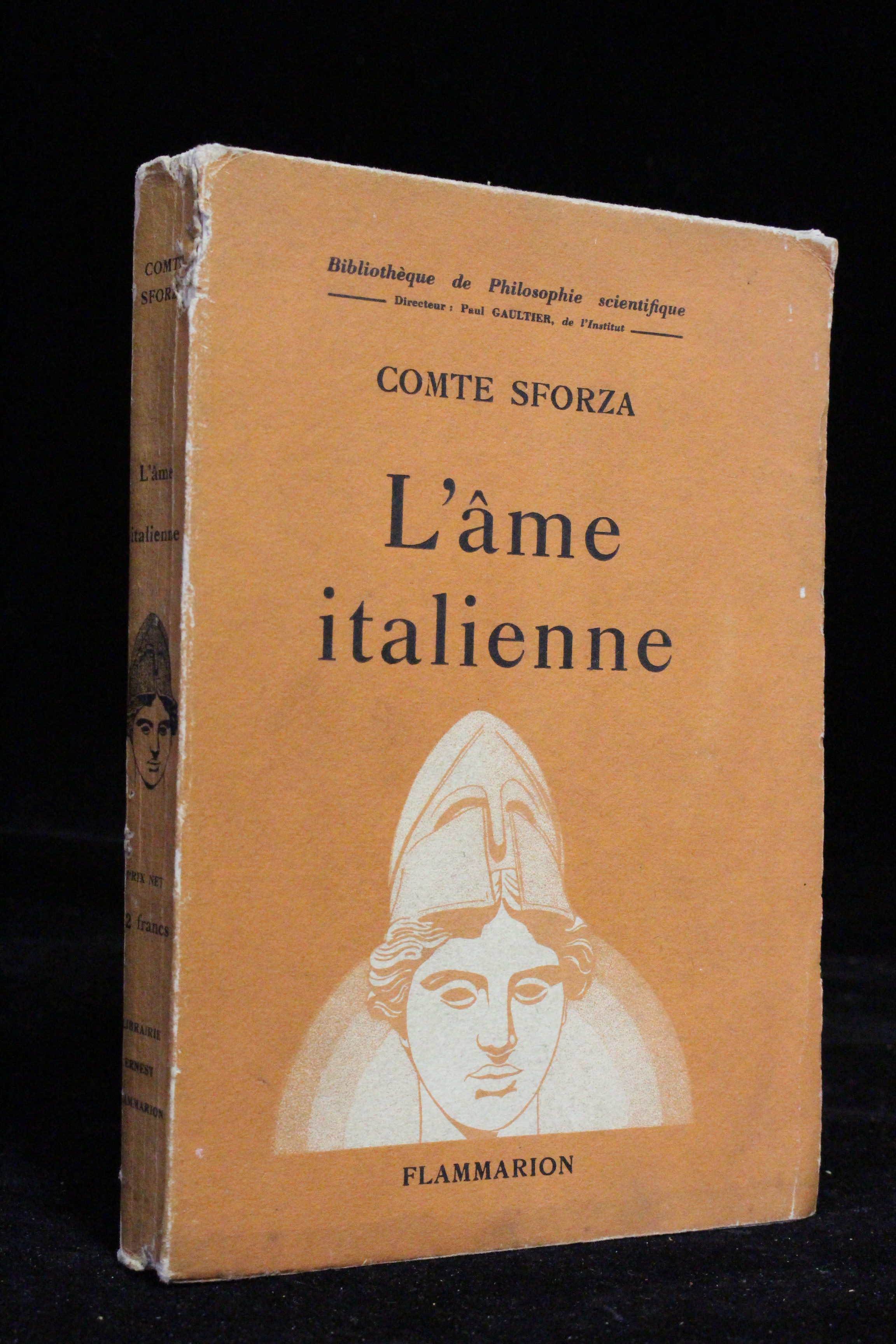 First edition, of which there were no deluxe copies, a Service de Presse (advance) copy. Precious autograph inscription signed by Count Sforza to Henri Béraud. Three tears with small lacks to spine, light dampstains to margins of verso of cover boards. Provenance: from Henri Béraud's library on Île de Ré.