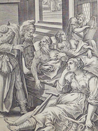 Infirmus eram et visitastis me. (Matt. 25.36.). Gravure originale du XVIIe siècle