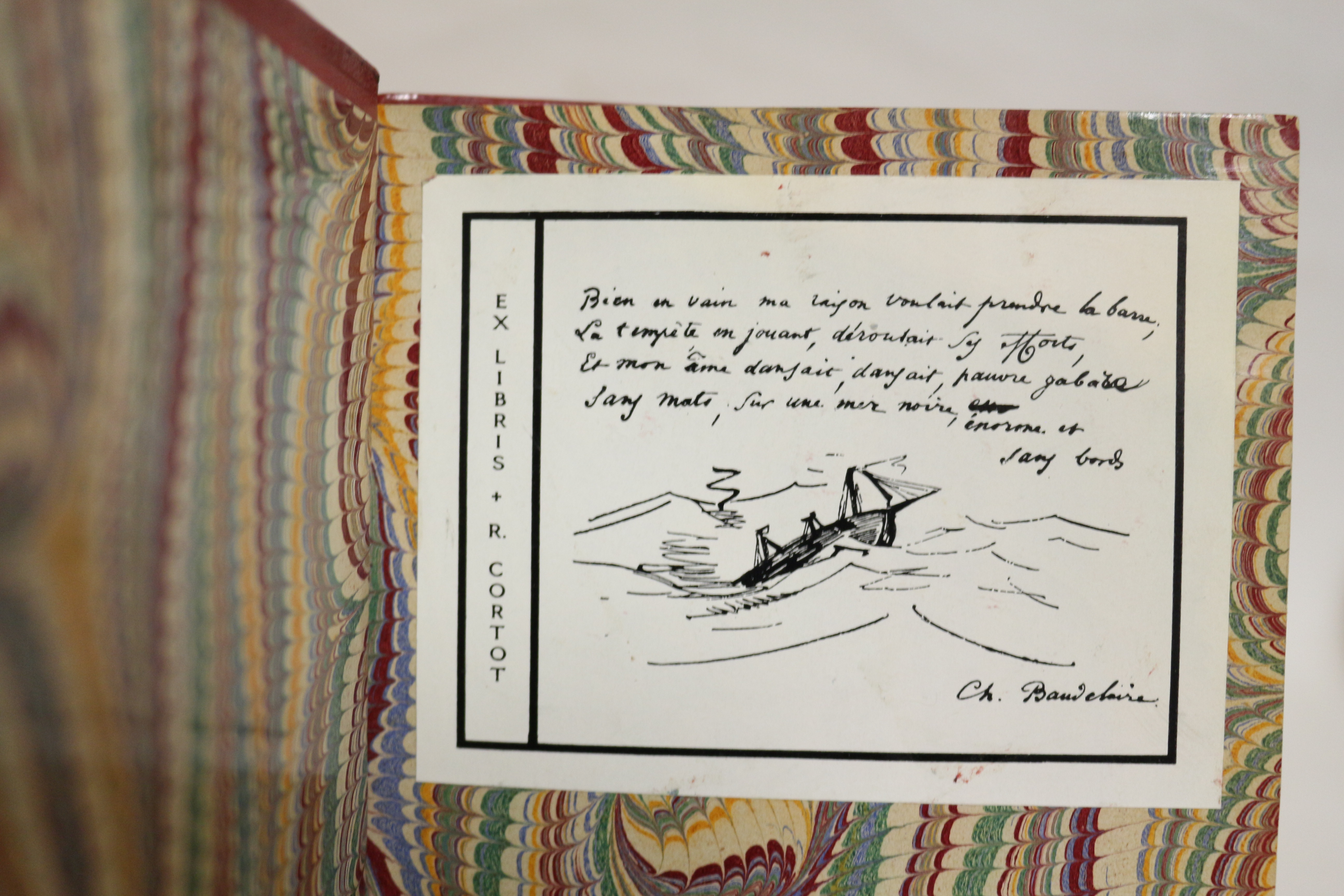 Les Fleurs du mal, Baudelaire fait paraitre confidentiellement une « notice littéraire » sur Gautier pour lequel il obtint une lettre préface de Victor Hugo. Sous son allure de simple panégyrique du poète impeccable, cette unique collaboration littéraire est le lieu d’un combat idéologique majeur entre les deux immenses poètes qui signent ici leurs manifestes respectifs : celui de l’art pour l’art contre celui de l’art pour le progrès. Découvrez, à travers cet exemplaire d’exception offert à Paul Meurice, ami intime des deux géants, l’histoire de cette rencontre tempétueuse entre l’Albatros et l’Homme Océan.