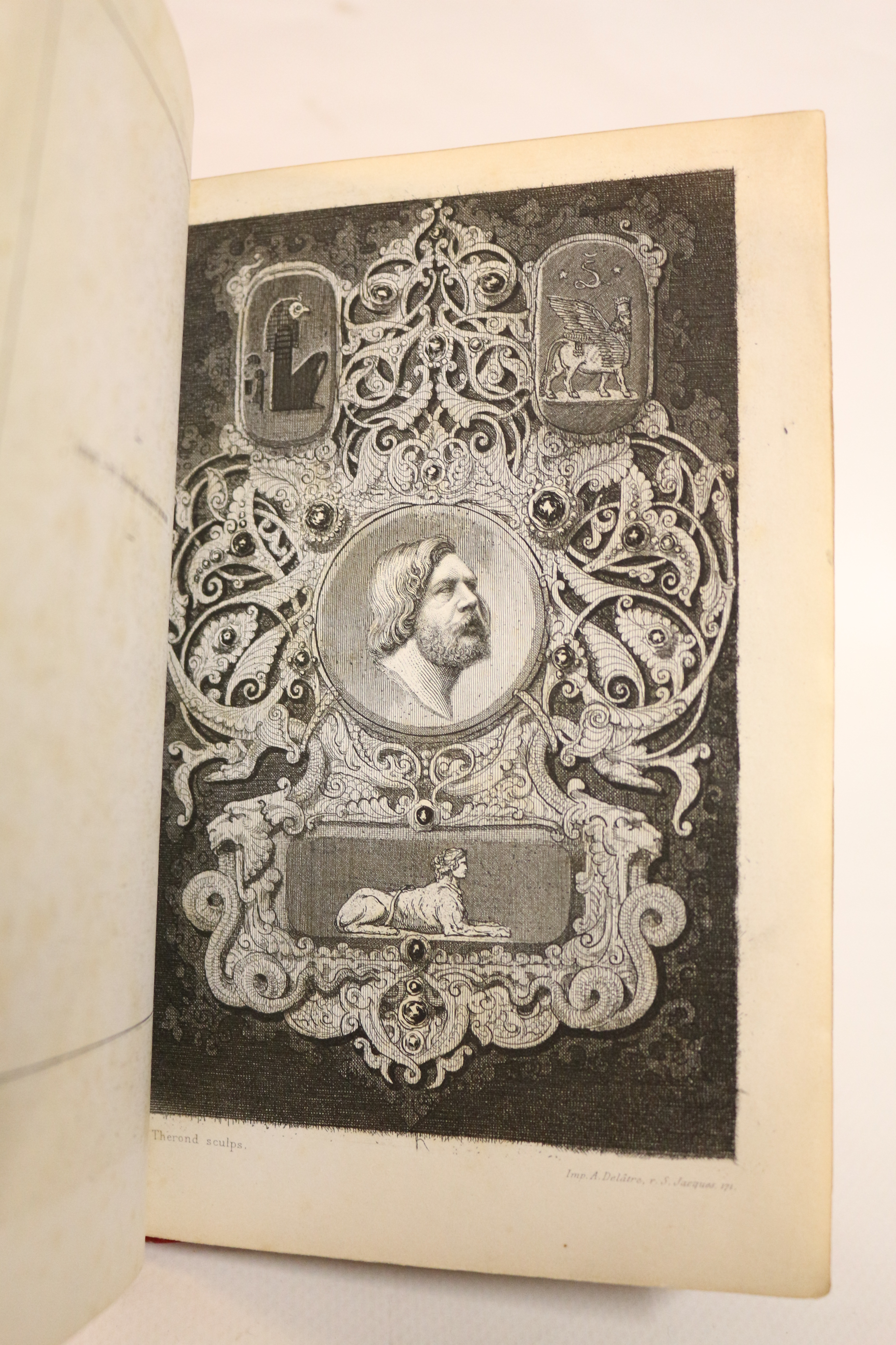 Portrait de Théophile Gautier gravé à l'eau forte par Emile Thérond en frontisipice.Importante lettre préface de Victor Hugo.Reliure en plein maroquin rouge, dos à cinq nerfs sertis de filets noirs, date dorée en queue, gardes et contreplats de papier à la cuve, ex-libris baudelairien de Renée Cortot encollé sur la première garde, couvertures conservées, tête dorée.