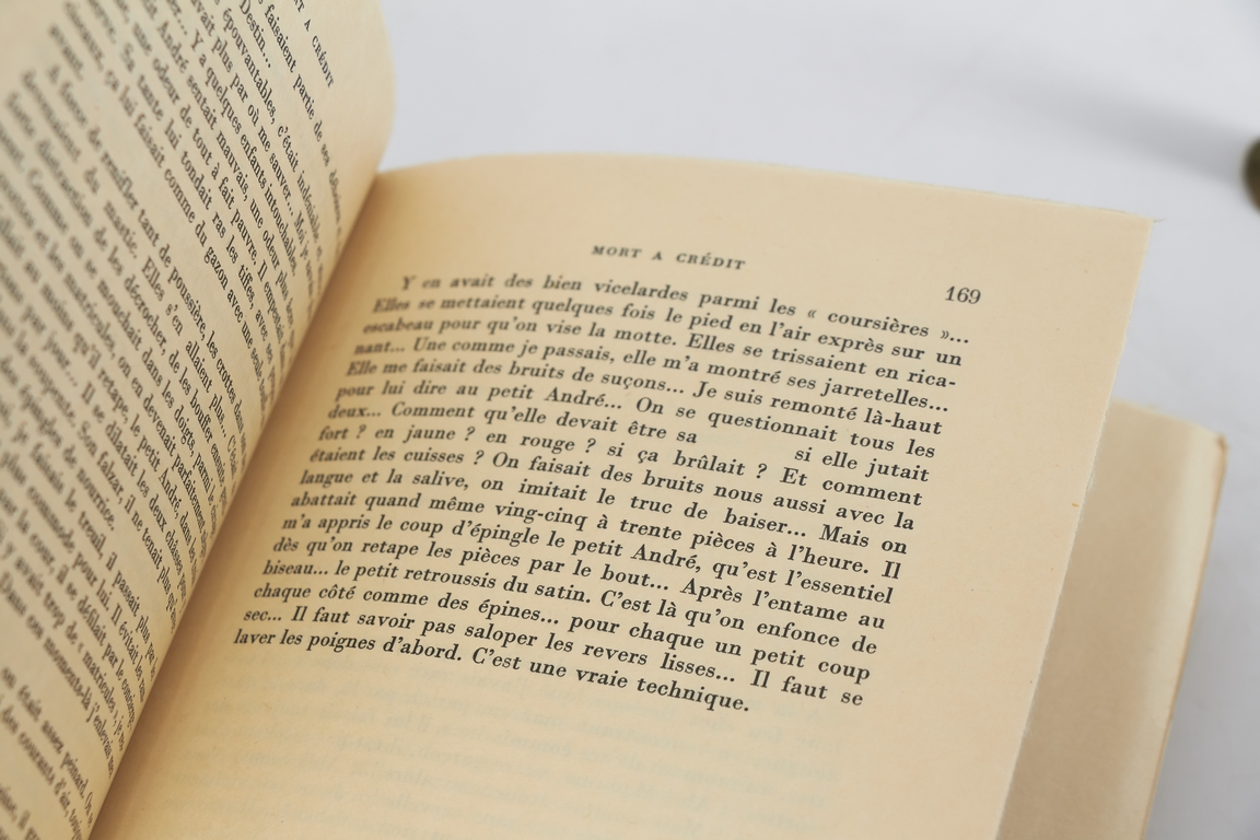 Mort à crédit, parue en 1936, comportent en effet, à l'exception de certains hors commerce, quelques espaces blancs parsemés dans le texte. Suppression d'un mot, d'une phrase ou de quelques lignes dont l'absence est ainsi accentuée par ces places vacantes dans le corps du texte.