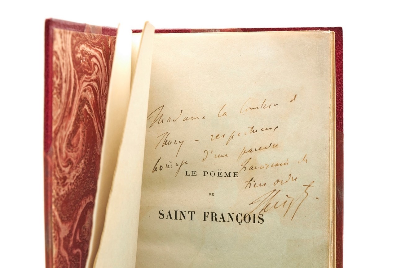 Manuscrit ou imprimé, l’ex-libris tisse un lien d’encre visible entre les lecteurs de tous siècles quand l’exécrable ex-dono (la marque laissée par celui qui offre un livre dont il n’est pas l’auteur) ne témoigne le plus souvent que du désir d’effacer le don derrière le donneur (sauf, bien sûr, lorsque le don d’un exemplaire du Poëme de Saint-François par « un pauvre franciscain de tiers ordre » s’avère être l’exemplaire de Franz Liszt offert au crépuscule de sa vie à son premier amour, Adèle de La Prunarède).