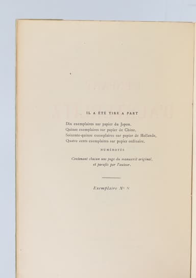 Edition originale, un des 10 exemplaires numérotés sur Japon, tirage de tête. Un manque en pied du deuxième plat, sinon très bel exemplaire. Notre exemplaire comporte une page du manuscrit de l'ouvrage et la signature autographe de l'auteur en regard.