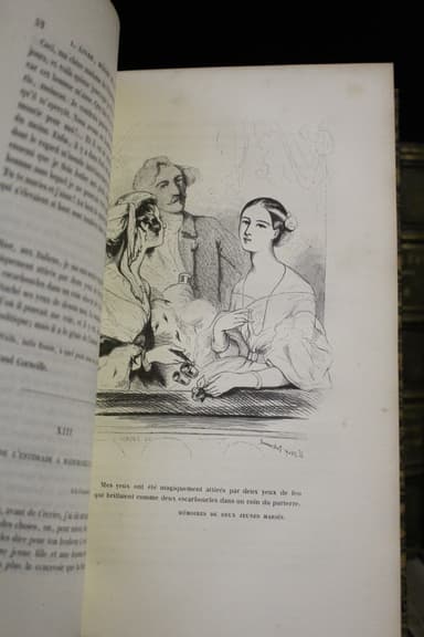 Ensemble complet des 152 planches hors-texte par les meilleurs artistes de l'époque dont Bertall, Daumier, Gavarni, Johannot, Nanteuil ainsi que d'illustrations in-texte. Autant de raisons pour insister sur l'intérêt de cette édition, l'un des plus importantes de la littérature française. Ayant eu une existence agitée, confuse, plusieurs fois rééditée à un grand nombre d'exemplaires, elle est fort rare sous sa première forme, et, sous cette première forme, plus rare encore en reliures uniformes d'époque qu'en reliures modernes avec les couvertures conservées. (Cf Clouzot)