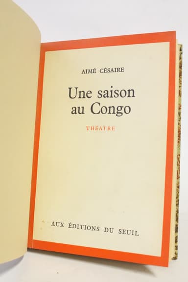 Edition originale pour laquelle il n'a pas été tiré de grands papiers. Reliure à la bradel en plein papier à motifs africanisants, dos lisse, pièce de titre maroquin noisette, couvertures et dos conservés, élégante reliure signée de T. Boichot. Envoi autographe signé d'Aimé Césaire à une proche amie : "... D? Gombos? Soul? Toujours Edith au nom d'une amitié fondamentale..." Bel exemplaire agréablement établi.