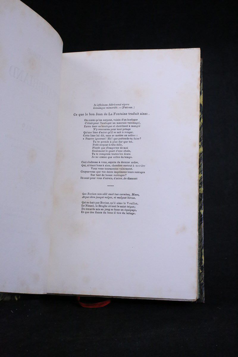 Edition originale. Reliure en demi basane sapin, dos lisse passé orné de fers romantiques dorés et à froid, plats de papier marbré, gardes et contreplats de papier à la cuve, couvertures conservées. Quelques petites rousseurs.