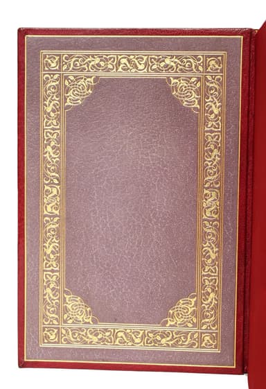 Reliure en plein maroquin bordeaux, dos à quatre nerfs, lieu et date dorés en queue, roulettes dorées sur les coiffes, doubles filets dorés sur les coupes, contreplats en plein maroquin lilas richement ornés d'un cartouche central doré agrémenté d'entrelacs dorés, gardes de soie moirée bordeaux, gardes suivantes de papier à la cuve, couvertures et dos conservés, toutes tranches dorées, magnifique reliure en plein maroquin doublé et signée Blanchetière ; étui bordé de maroquin bordeaux, plats de papier à la cuve, intérieur de feutrine marron.