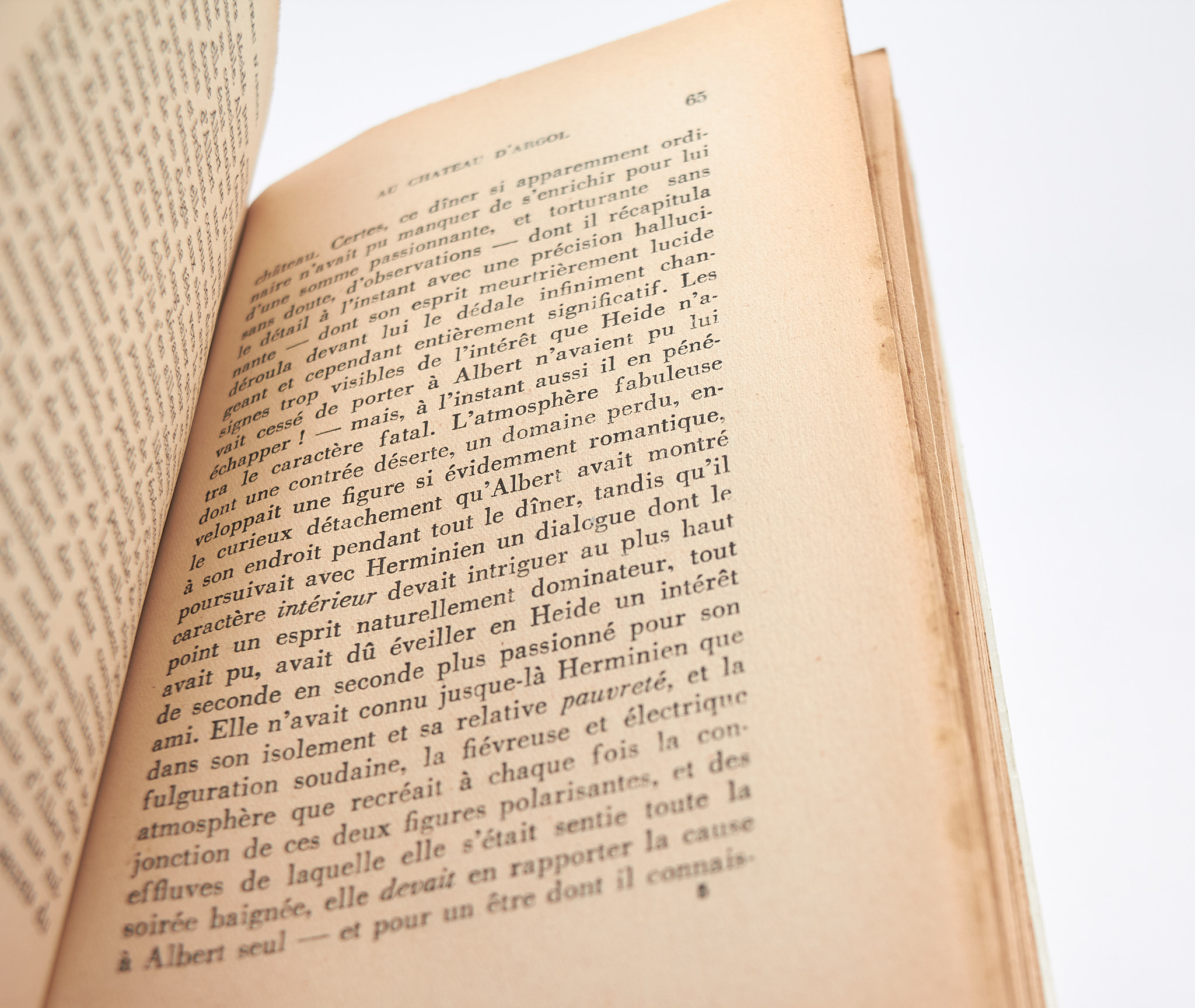 Edition originale pour laquelle il n'a été tiré que 3 alfa en grands papiers. Une tache en pied de la page 177 sans atteinte au texte, petites piqures sur quelques témoins. Bel exemplaire du premier ouvrage de l'auteur au dos non passé, ce qui est rare.