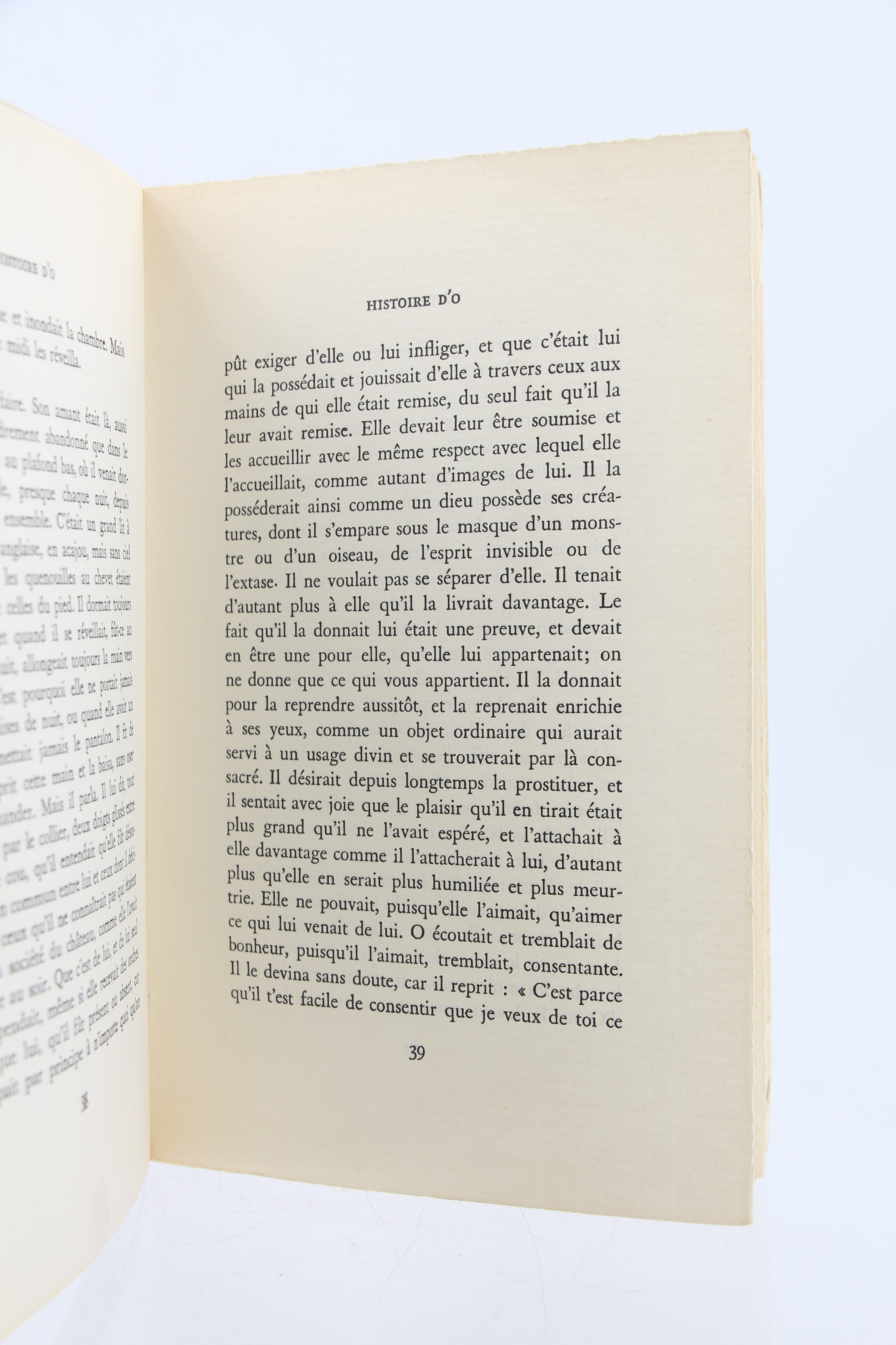 Édition originale, un des 480 exemplaires numérotés sur vergé, le nôtre un des quelques hors commerce, seuls grands papiers après 20 Arches et 100 autres vergé réservés au service de presse. Notre exemplaire est bien complet de la rare vignette dessinée et gravée par Hans Bellmer tirée en sanguine et présente sur environ 200 exemplaires seulement. Préface de Jean Paulhan. Bel exemplaire de ce chef-d'œuvre de la littérature érotique.