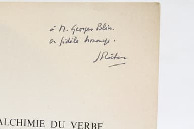 Edition originale pour laquelle il n'a pas été tiré de grands papiers. Dos très légèrement insolé, exemplaire complet de son prière d'insérer. Envoi autographe signé de Jean Richer au professeur Georges Blin. Georges Blin, spécialiste des ouvrages de Baudelaire et Stendhal, fut un important critique littéraire, universitaire (il fit partie avec notamment Vladimir Jankélévitch et Jean Wahl, du jury qui discuta en Sorbonne la thèse de doctorat d'Emmanuel Lévinas, Totalité et infini). Il a été directeur également de la bibliothèque littéraire Jacques Doucet des Universités de Paris (Sorbonne, 1961-1988), professeur de la chaire de Littérature française moderne au Collège de France (1965-1988) et professeur honoraire au Collège de France.