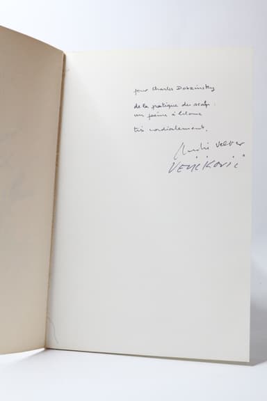 Edition originale illustrée de dessins de Vladimir Velickovic. Agréable exemplaire. Envoi autographe signé d'André Velter à Charles Dobzynski "... de la pratique du scalp : un poème à blanc." enrichi de la signature manuscrite de Vladimir Velickovic.