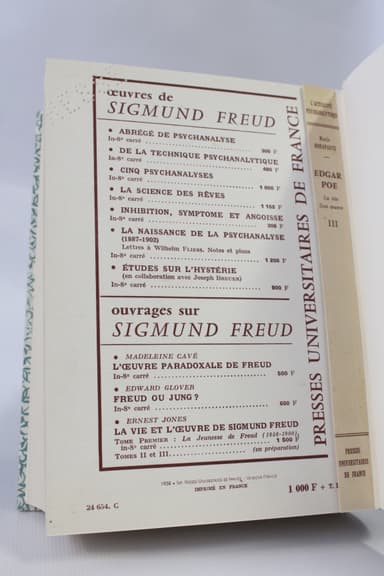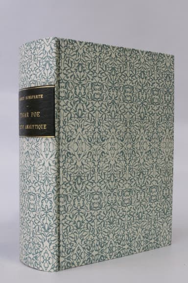 Nouvelle édition, un des exemplaires du service de presse pour chacun des volumes. Reliure en plein papier à motifs décoratifs, dos lisse, pièce de titre de maroquin vert sapin, plats de papier marbré, couvertures et dos conservés pour chacun des volumes, reliure signée de Thomas Boichot. Envoi autographe signé de Marie Bonaparte à Francis Ambrière sur le premier volume. Avant-propos de Sigmund Freud, iconographie. Bel exemplaire agréablement établi.