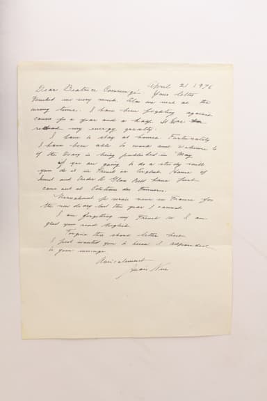 Il met également en garde la future traductrice d'Anaïs Nin, contre la dualité de son ancienne maîtresse : « She is or was a complete enigma, absolutely dual. [...] Actually, I suppose there is always this dichotomy between the person and the writer », lui confiant ses secrets : « she is slowly dyin (of cancer) she refuses to admit it. (This is entre nous !) » et révélant ses nouveaux amours : « I am in love with a very beautiful chinese actress [...]. I seem to go from one to another, never totally defeated, never wholly satisfied. But this is near