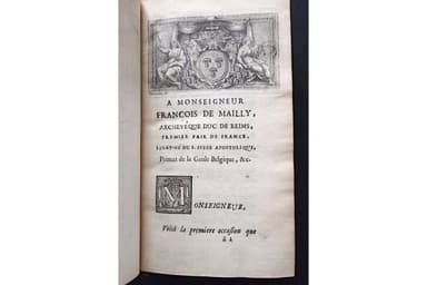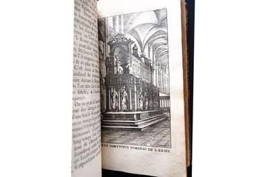 Edition originale, rare. Privilège de 1686 cédé à Claude Bouchard. Un frontispice de Thomassin représentant S. Rémy lors d'un baptème. Un bandeau de titre et une lettrine, une figure représentant le tombeau de l'archevêque. Reliure en plein maroquin rouge glacé d'époque. Dos à nerfs janséniste. Pièce de titre en maroquin rouge. Roulette sur les coupes et intérieure. Tranches dorées. Dos fendillé. Un coin émoussé. Bel exemplaire. Hagiographie du célèbre archevêque de Reims qui convertit Clovis au Ve siècle après Jésus-Christ et donna naissance à la monarchie française. Il est une des grandes figures de l'église des Gaules. Nombreuses considérations et dissertations historiques sur le diocèse de Reims, l'abbaye de s. Remi...