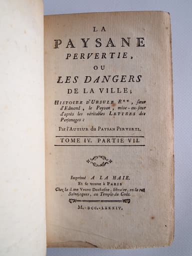 L'avis in fine du tome IV précise "Le paysan perverti, ne fait qu'une seule et même histoire avec celle que nous publions" (Ursule, la paysanne, est la soeur d'Edmond, le héros du Paysan perverti, venus tous deux dans la famille Parangon pour y apprendre la peinture).