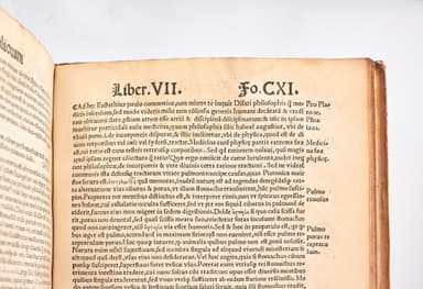 Première édition parisienne du Libri de re rustica illustrée d'un titre-frontispice représentant une scène d'imprimerie, ainsi que diverses scènes mythologiques en encadrement. Une annotation manuscrite du temps sur la page de titre. Belles lettrines. Cette édition contient le glossaire de Giorgio Merula, les commentaires de Filippo Beroalda l'Ancien sur les treize livres de Columelle, ainsi que la table d'Alde Manuce sur la durée du jour et la taille des ombres portées, suivant les enseignements de Palladius. Troisième édition chez Josse Bade pour Macrobii Aurelii Theodosii Viri consularis, après celles de 1515 et 1519. Elle est suivie sous pagination particulière d'un opuscule de Censorin intitulé De die natali. Page de titre-frontispice répétée. Lettrines identiques au texte précédent ; un large bandeau représentant des astronomes, ainsi que plusieurs autres vignettes et schémas astronomiques in-texte. Une très importante carte de Macrobe représentant les zones climatiques.