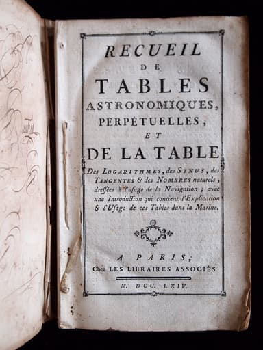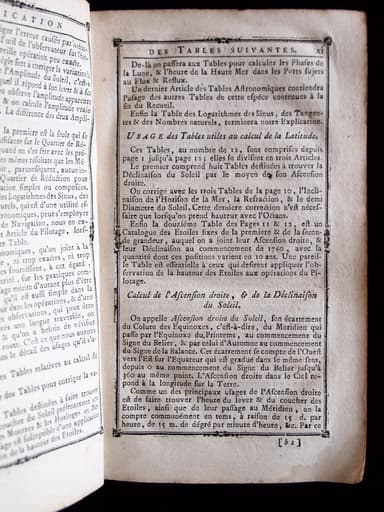 Ensemble des tables servant à la navigation (latitudes, lune, vents, ports...), avec 64 pages d'explication de ces tables.