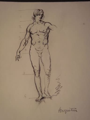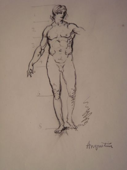 Signature du cachet de la signature de l'artiste dans l'angle inférieur droit de l'œuvre, et signature du cachet de l'atelier au verso. Ce dessin fait partie d'une série de dix études réalisées pour Bertin vers 1920-1925. Il comporte des annotations à l'encre de l'artiste, explicitant son travail sur les proportions anatomiques.Très bel état de conservation.