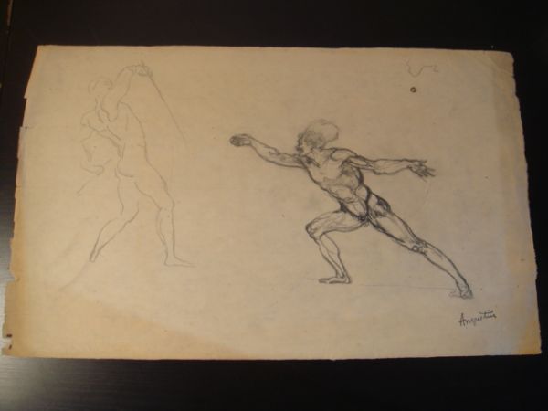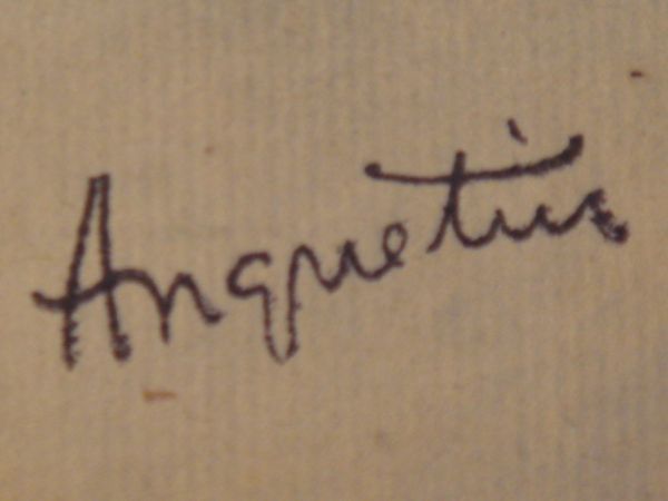 Louis Anquetin, né à Étrépagny en 1861 et mort à Paris en 1932, est un important peintre français.Il commence sa carrière aux côtés de peintres d'avant-garde tels que Vincent Van Gogh ou Henri de Toulouse-Lautrec. Avec Émile Bernard, il est l'inventeur du Cloisonnisme. De 1884 à 1893, Louis Anquetin ne cesse d'explorer les possibilités nouvelles offertes par la libération introduite par l'Impressionnisme dans la peinture française. A partir de 1893, à la suite d'une longue confrontation avec les « maîtres d'autrefois », il adopte un parti-pris pictural qui le mettra en marge du mouvement général de l'art, et l'éloignera de ses amis. Ébloui par l'art baroque et sa vigueur créatrice, il pense alors que ses amis de jeunesse se sont engagées dans une voie qui mènera à la mort de la peinture. Il croit en une « peinture parfaite » qui s'incarne dans le re-souvenir des leçons de Michel-Ange et de Rubens notamment. Son travail devient donc plus classique, il prône le retour au métier, en proposant de réfléchir sur les conditions a priori de toute forme d'art possible dans le respect des règles de la perspective et de l'anatomie, telles que pratiquées par les maîtres du XVIème et XVIIème siècle.Ne laissant que quelques œuvres que l'on peut qualifier de monumentales, Anquetin s'avère prolifique par ses nombreuses études et esquisses, lui qui considérait que le dessin était « un moyen d'expression tout puissant », le fondement obligatoire de tous les arts plastiques.En travaillant volontairement à rebours de son époque, Louis Anquetin a rendu possible l'existence d'une figuration moderne originale. Par son obstination et sa passion de la peinture, il a en effet évité que ne soit totalement obturé le chemin de la grande tradition occidentale.