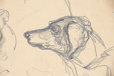 Dessin original au crayon, recto-verso. Au verso, différentes études de chiens.