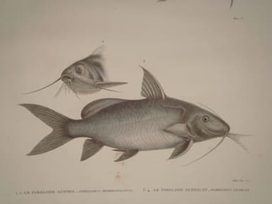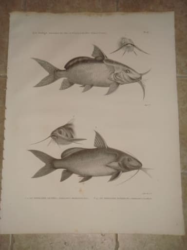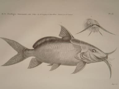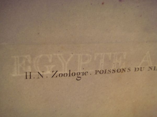 Planche appartenant à la série des Poissons, dont l'étude fut réalisée par Étienne Geoffroy Saint-Hilaire (1772-1844), naturaliste français qui participa à la campagne d'Égypte, et recueillit à cette occasion de nombreuses observations sur les mammifères, les reptiles et les poissons notamment.