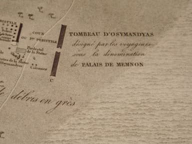 Le Memnonium, nom utilisé par les visiteurs de la vallée des Rois de 1750 à 1850, désigne un ensemble de trois constructions royales du Nouvel Empire : le Ramesseum, le temple d'Aménhotep III et le temple de Séthi Ier. Les dessinateurs et architectes de l'Institut créé par Bonaparte, envoyés en expédition à travers la Haute-Egypte à partir de 1799, documentent Thèbes et sa vallée des Rois, et s'essaient même à des reconstitutions d'après les descriptions de monuments faites par des auteurs antiques. Le tombeau d'Osymandias (une des nombreuses appellations de Ramsès II), très ruiné, fait ainsi l'objet d'une étude très complète et d'une tentative de restitution de ses parties lacunaires grâce aux écrits de Diodore de Sicile. Cet historien grec de l'époque augustéenne a séjourné dans la vallée du Nil entre 60 et 57 avant notre ère, et sa visite au tombeau de Ramsès II est relatée dans sa monumentale Bibliothèque Historique (Livre I, XLVII-XLIX).