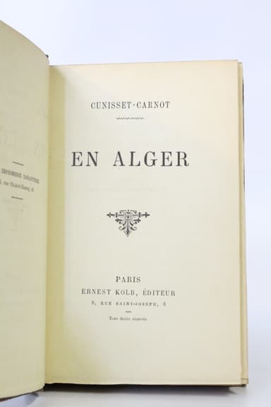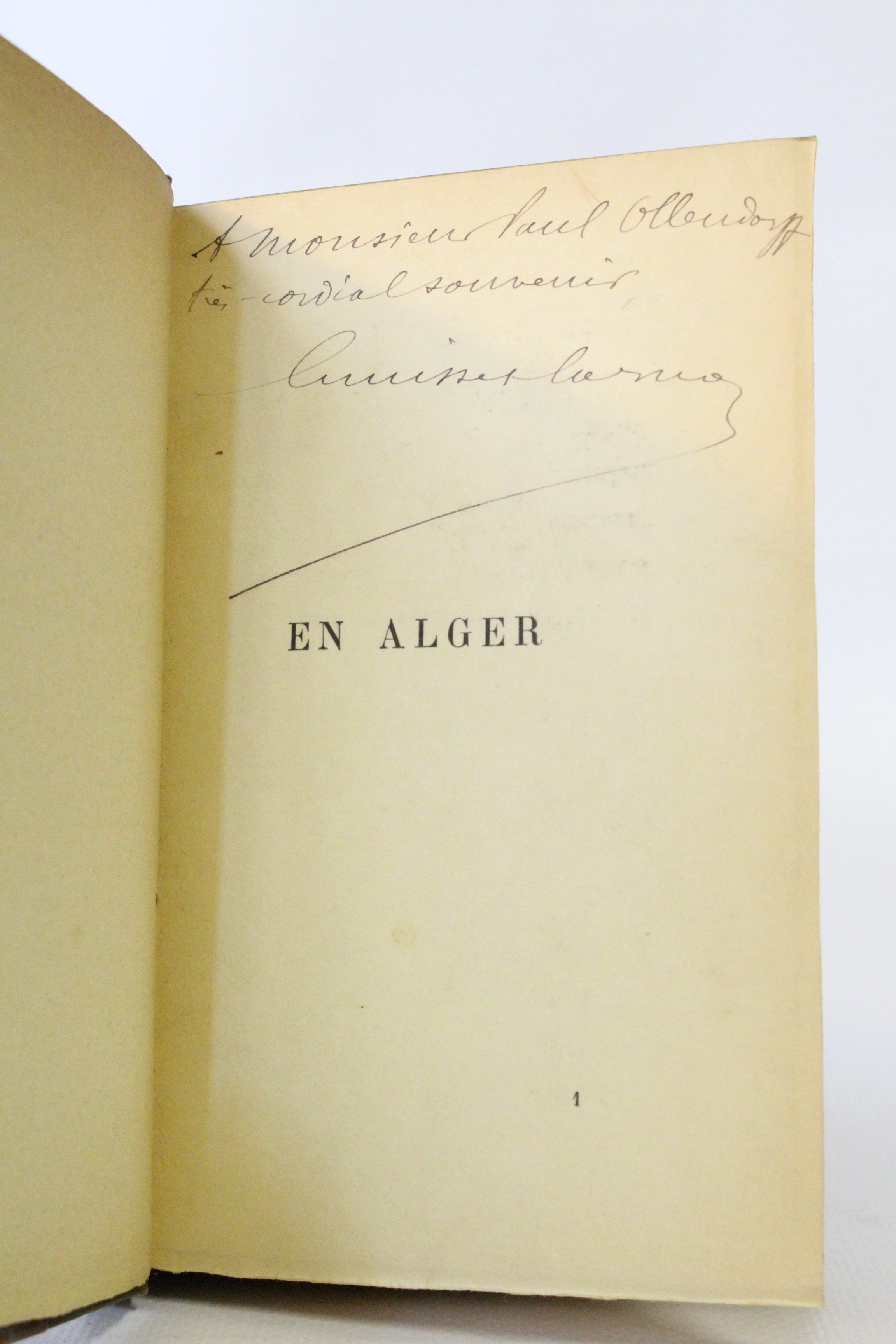 Edition originale, un des rares exemplaires sur Japon dont il n'est fait nulle mention. Reliure à la bradel en demi percaline kaki, dos lisse orné d'un motif floral doré, double filet doré en queue, pièce de titre de chagrin rouge comportant des éraflures, plats de papier marbré, tête dorée, reliure de l'époque. Envoi autographe signé de Paul Cunisset-Carnot à Paul Ollendorff. Agréable exemplaire.