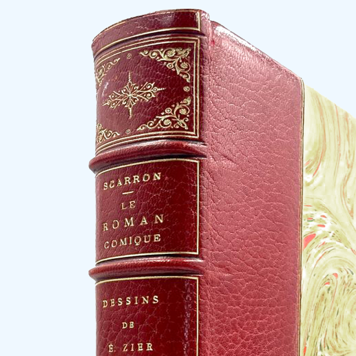 Reliure en demi maroquin rouge à coins glacé d'époque signée en haut de la première page de garde A. Jonquières. Dos à nerfs orné de fers d'inspiration XVIIe siècle dans des caissons. Titres et date dorés. Couvertures et dos conservés. Quelques rousseurs pâles en page de titre, très rares rousseurs ensuite. Ensemble bien frais.