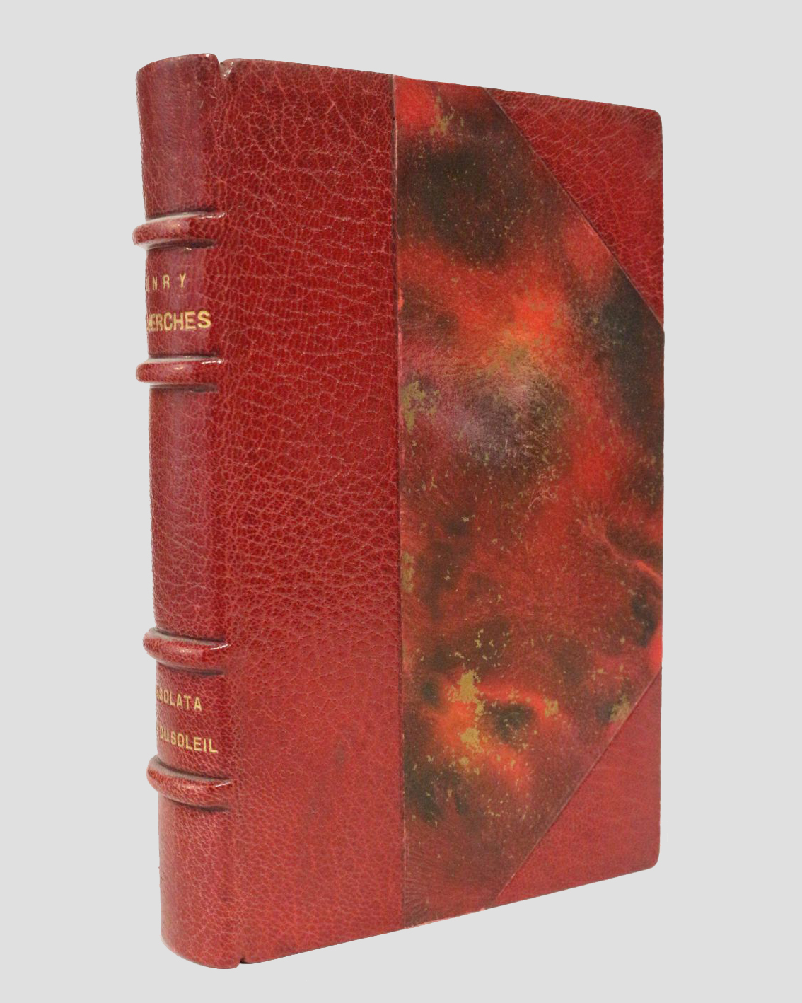 Reliure à la bradel en demi percaline verte, dos lisse orné d'un motif floral doré, date et double filet dorés en queue, pièce de titre de chagrin marron comportant des frottements, plats de papier marbré, couvertures conservées, tête dorée, reliure de l'époque signée Mertens.